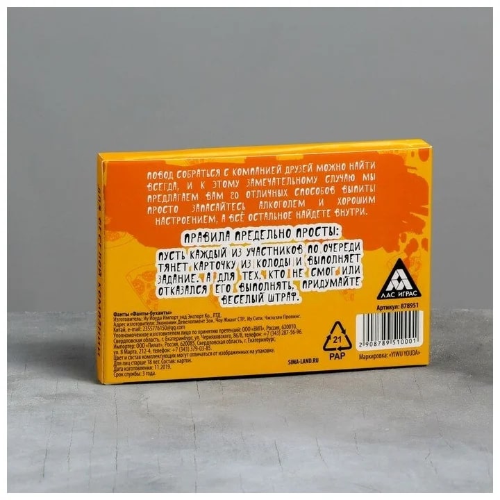 Купить игра для компании "фанты буханты" 20 карт от 100 руб. с доставкой до пункта выдачи в Орлове. Интернет магазин ДекаМаркет. Оплата при получении.