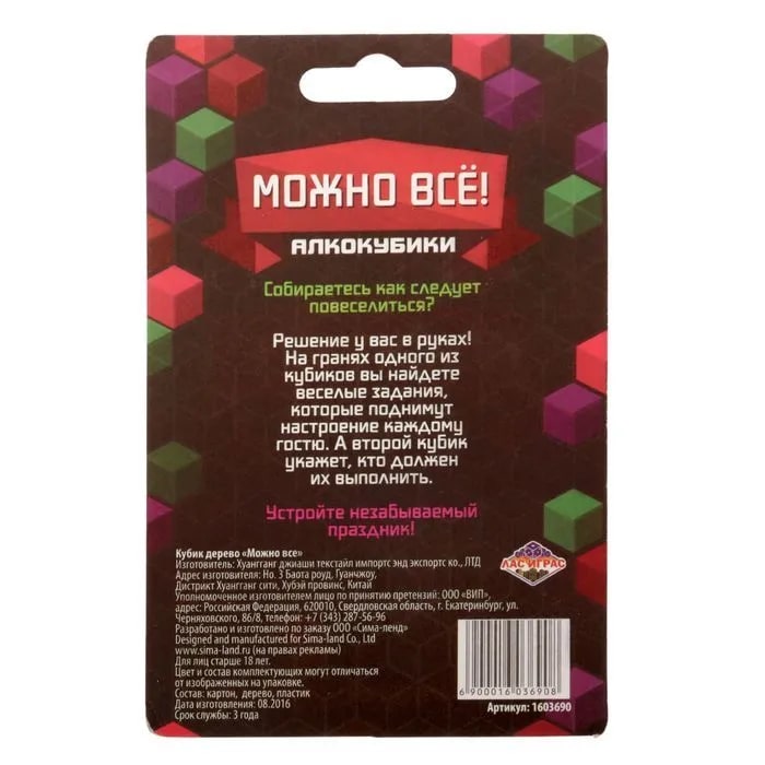 Купить кубик "можно все", алкокубики для принятия решений от 60 руб. с доставкой до пункта выдачи в Орлове. Интернет магазин ДекаМаркет. Оплата при получении.